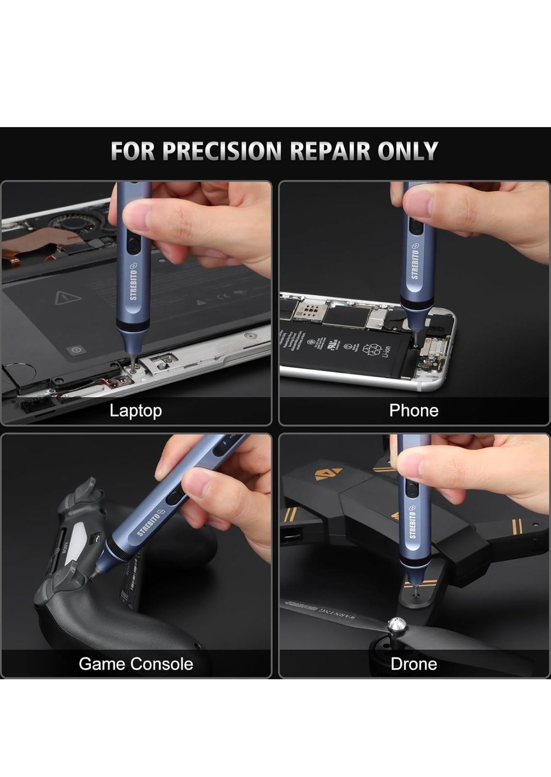 Precision Tool: This electric screwdriver set (170 RPM, 0.3 N.m torque electric, 3.5 N.m manual) is ideal for precision tasks like electronics, PCs, and phones. Loosen tight screws manually before use for best results. Not suitable for large projects