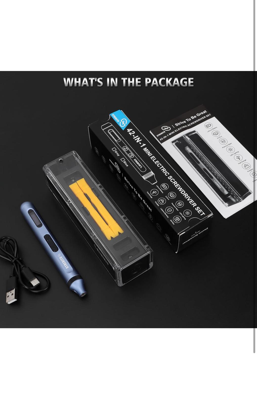 Comprehensive Kit: Comes with 1 small electric screwdriver, 36 S2 bits, 2 pry bars, 1 magnetizer, 1 Type-C cable, and 1 manual in a sleek box. If you encounter any issues with the screwdriver set electric during use, please contact us immediately